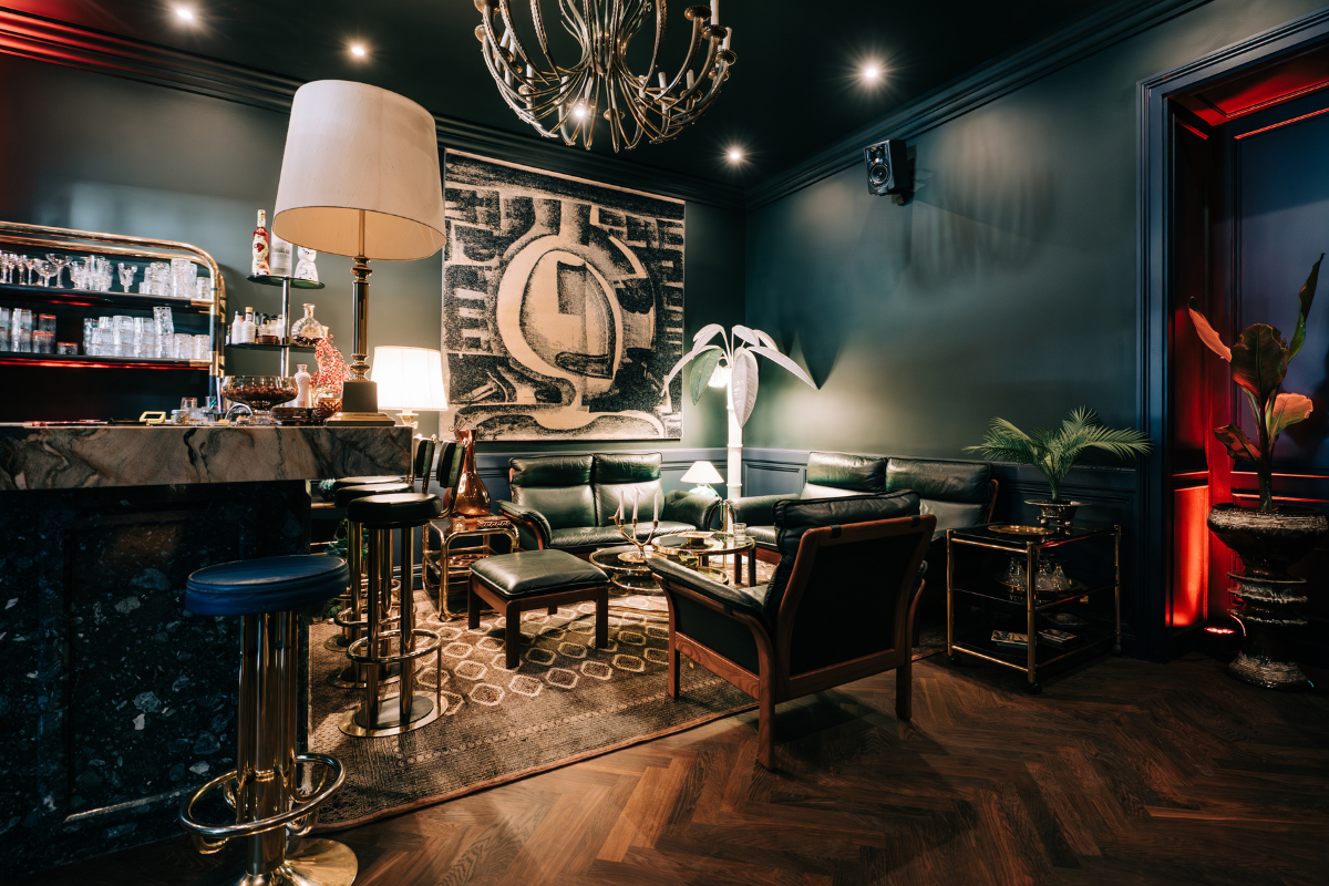 Extravagant design with a professionally equipped kitchen, bar and restaurant in a 170 m² downtown apartment.
