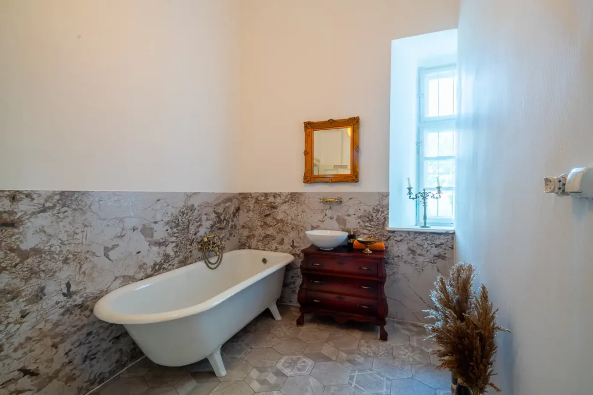 A telken található továbbá egy 21 m²-es kápolna (jelenleg a belső tér nem használható), és igény szerint egy 1978-as évjáratú Mercedes C123 oldtimer is bérelhető, ami különleges hangulatot ad a fotózásokhoz és forgatásokhoz.