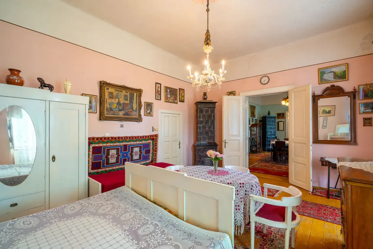 A villa tágas, világos tereit antik bútorok és klasszikus részletek díszítik. Két hálószoba, nappali, dolgozószoba, konyha és fürdőszoba áll rendelkezésre, a terasz és a 4000 m²-es panorámás kert pedig exkluzív kültéri hátteret biztosít.